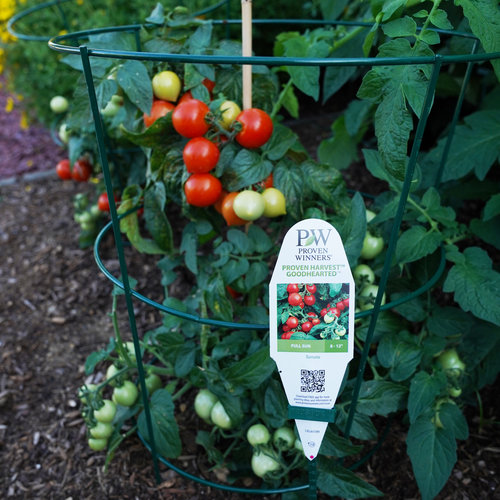 | Features | A semi-determinate container tomato that will prolifically produce cherry-sized tomatoes with great taste. The compact size works well in patio planters, window boxes and would be a fun hanging basket plant where it will cascade and allow for easy harvest. It should not need to be staked or caged to grow it successfully. Yellow blooms appear late spring through summer, grow in 12 in. to 18 in. containers for best results. These plants have good disease resistance and with proper care should provide fruit throughout the season. |